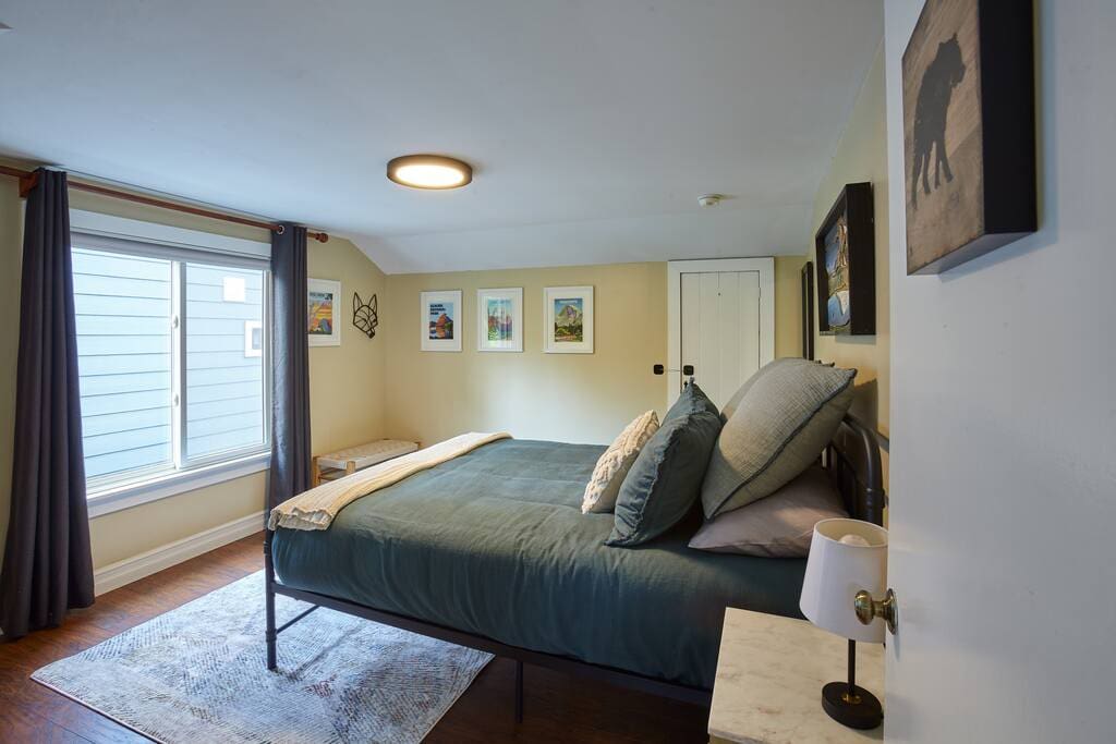 The Gateway House is great combination of 1930’s farmhouse charm with plenty of modern updates. With views of both Tiger and Squak mountains that extend beyond a large front yard, you will be treated to beautiful views from sunrise to sunset either from inside or outside the home. Located on a large corner lot and directly adjacent to the lower reaches of the mountain, you feel like you could be miles away from the city in the countryside. You'll be inspired to cook with the full size kitchen featuring high end stainless steel appliances, cupboards stocked with pots/pans and utensils galore. A coffee machine with complimentary beans is on stand-by to give you your morning pickup. The kitchen bar with stools is a perfect place to post up for a warm cup of coffee, entertain the chef or get a little work done. Finally, we've provided a curated selection of local wines for purchase, perfect to pair with a meal or conversation with friends and family for purchase. Salud! A 6 person dining table is also available for sit down meals. The living room features a a cozy couch and side chairs to watch TV from, read a book in, or simply take in the amazing views. Netflix, Hulu Live, Disney , Paramount + and Amazon Prime are provided for your viewing pleasure. The bathroom features heated tile floors and the bath/shower combo is great for families with kids (bath toys available upon request) or those that prefer a nice soak. Amenities include oversized towels, hair dryer and bath toiletries. The downstairs master includes a king size Casper mattress to sprawl in and a tv is included for those who love nothing more than not having to get out of bed. Upstairs features two themed rooms that reflect our passion and embrace of the beautiful outdoors. The National Park room has a Queen sized Casper and the Tiger View Room has a full bed. Outside, the Gateway House shows off its best. Choose from the well manicured front lawn full of terrific views which is dedicated space for those staying at the house, or take advantage of the shared patio space in back which includes loungers, outdoor dining for 6, BBQ and an outdoor living couch. Patio is shared space with guests at the Gateway Getaway. Hiking, walking and mountain bike trailheads are less than a 5 minute walk / 2 minute ride from the front door. Downtown Issaquah restaurants and shops are a 3 minute drive or 15 minute walk down a well used walk/bike path (Rainier Trail). Snoqualmie Pass skiing is a mere 40 minutes away or pop into the city for a meal, sporting event or show in less than 25 minutes.