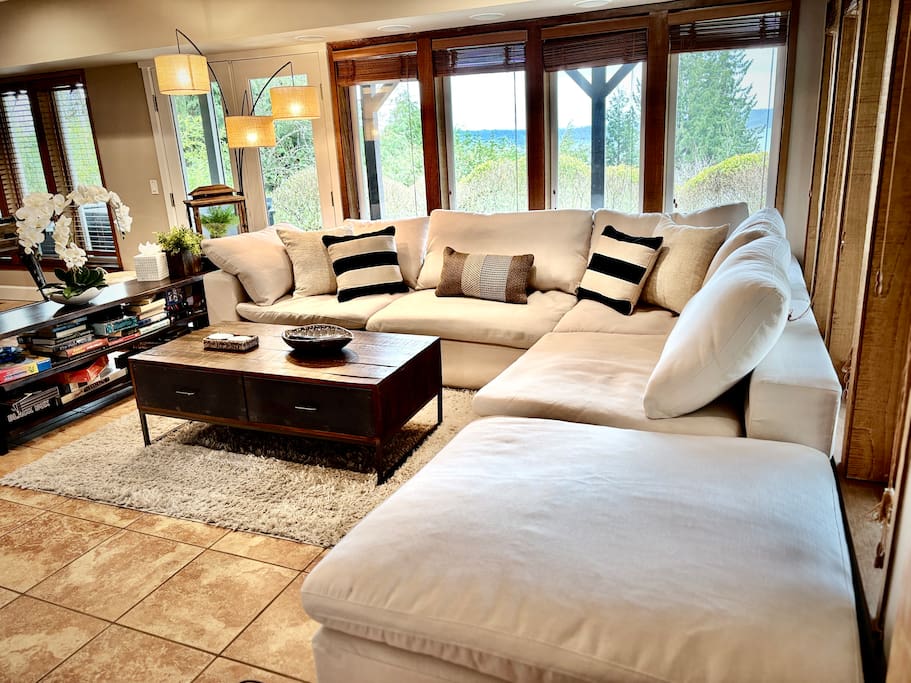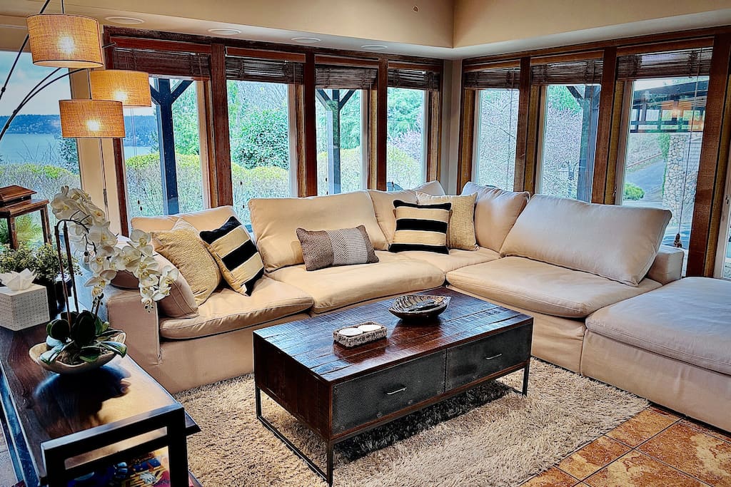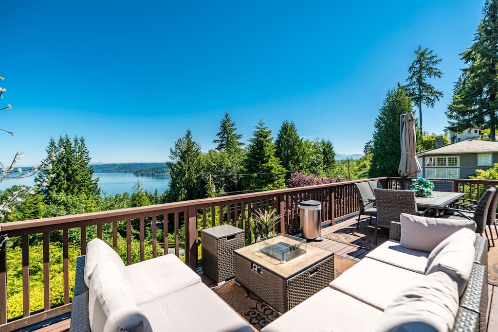 The huge deck provides breathtaking views of Lake Sammamish. Relax on the large outdoor couch with propane fire pit. New bbq grill is located next to the outdoor dining table which also features a fire pit. The lower patio also features multiple seating areas and a private, professionally maintained hot tub. For all direct and VRBO reservations, a guest verification notification will be sent via Truvi, our trusted platform for identity and background screening. The base price includes up to 6 guests. Each additional guest is $50 per guest per night. This allows the home to be more affordable for smaller groups while covering the additional wear and tear for larger groups For stays longer than 28 days, our standard procedure includes: - Signed lease agreement - Background check - Refundable security deposit: $3000 Additional requirements: - Deep cleaning fee: $50 - Regular cleaning fee: Required every 15 days Pet Policy: We love hosting your furry companions! To help maintain the cleanliness and comfort of our space for all guests, a pet fee will apply based on the length of your stay: 7–14 Days: $200 for 1 pet 14–30 Days: $350 for 1 pet, $500 for 2 pets 30+ Days: $500 for 1 pet, $750 for 2 pets Please let us know in advance if you’ll be bringing a pet so we can prepare the space accordingly. Thank you for helping us keep our home welcoming, pet-friendly, and well cared for!