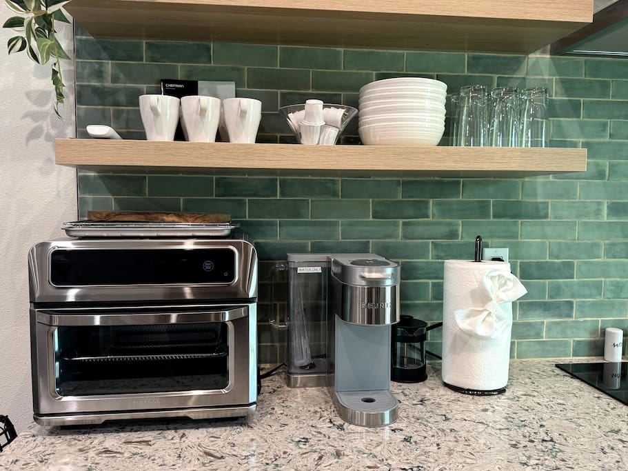 Welcome to Gateway Rentals (grmrentals)! This newly renovated retreat with vaulted ceilings offers the perfect blend of comfort and style. Relax on the outdoor deck or unwind indoors in a cozy space designed for rest. The full kitchenette is stocked with essentials, including an oven toaster, for easy meals. Sleep soundly on the plush King Casper mattress, then wake up refreshed with a Keurig brew or French press coffee. A stay here promises comfort, convenience, and relaxation.