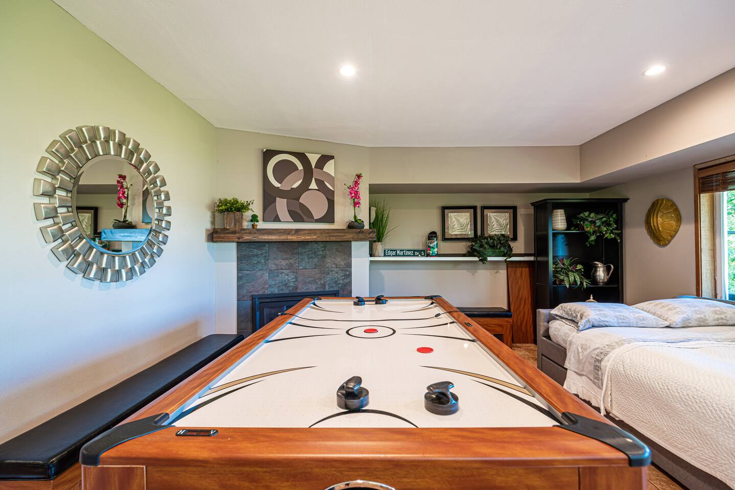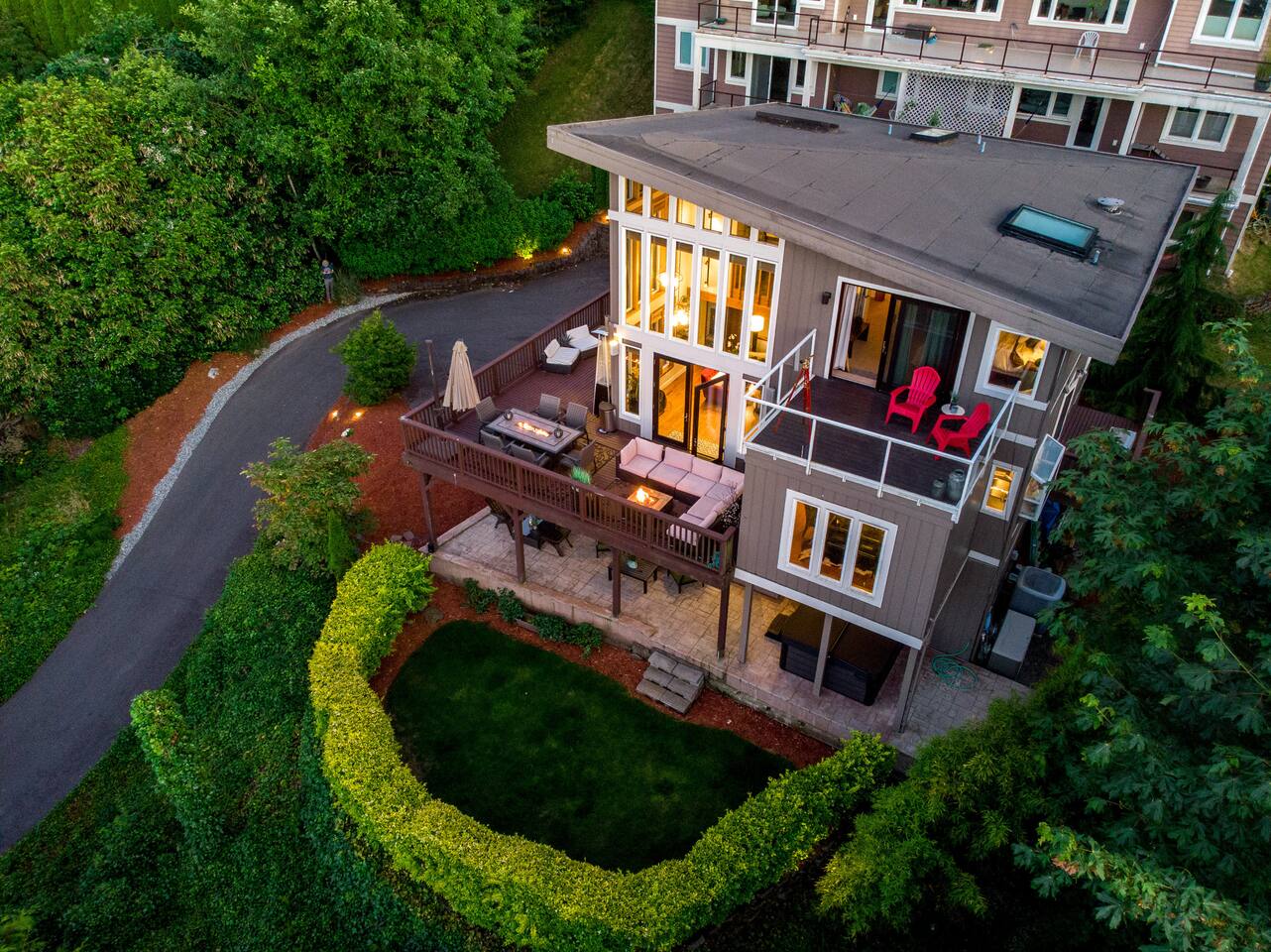 With 3 floors of living space, the home is perfect for multi-generational families as well as business retreats. Recently renovated, minutes away from both Seattle and Bellevue (MSFT, T-Mobile, SBUX, Google, Boeing), with a PNW cabin feel! Exposed beams and three stories of wall to wall views of Lake Sammamish and surrounding mountains make our house something out of the ordinary. Relax in the hot tub or sauna, gather on our extensive decks with breathtaking views, a gas fire-pit, and fire-table dining set - you won't want to leave! We have set the house up to be as convenient as possible for those traveling with children. For infants and toddlers, we have a playpen, pack and play/crib, vibrating baby bouncer, high chair, and baby toys. For the bigger kids we have an air hockey/ping pong table, fooseball table, ladder toss, and an assortment of family friendly games. With inviting living & dining areas, a great gourmet kitchen, four generously sized bedrooms, hot tub, sauna, and televisions in all bedrooms and living areas, it's perfect for a family vacation, romantic getaway or to stay in while working in the area. The ground floor features a family room with a new down filled sectional couch, television with cable, wet bar with wine fridge, extra full sized refrigerator, gas fireplace, ping pong/airhockey table, fooseball table, books and games, a full bath, sauna, and a full size day bed. The 2nd floor has a living room with a large, beautiful new down filled modular couch, television with cable , dining room with seating for 6-8, kitchen with counter dining for four, a full bath, and two queen sized guest bedrooms each with televisions and closets. The third floor has a king master bedroom, queen guest room, small open office area, and a full bath. The master features a private deck with outdoor couch, expansive closet, and a private sink with vanity. The queen guest bedroom does not have a closet as it is locked for owner storage. Outdoor areas: Ground level has a wrap around patio with outdoor furniture and covered hot tub. The 2nd floor has an expansive wrap around deck with incredible lake views, new bbq grill, a large outdoor couch, fire pit, and dining fire-table. 3rd floor has a private deck with outdoor couch off master - 3rd floor Master: One king bed - 3rd floor guest room: One queen size bed - Main floor guest room: One queen size bed - Main floor guest room: One queen size bed - Full size daybed on first floor -A full bath on all three levels accessible from the hallways (Not en-suite) We stock the house fully and try to anticipate everything you might need. All bedrooms have easily accessible outlets and usb ports next to each bedside. We have a kuerig and a standard drip coffee maker and stock coffee, k cups, and various sweeteners. We have a well stocked kitchen with lots of spices and basic pantry items and all the kitchen utensils you could every need. We are very responsive to our guests needs and will respond immediately should you encounter anything that you need during your stay. Please read all house rules before booking. Contact us prior to booking if: *You would like to bring pets *You don't have any previous reviews on VRBO *You have prior negative reviews Please note that only registered guests are allowed to be on the property at any time unless you get prior approval. We do not permit parties or gatherings.