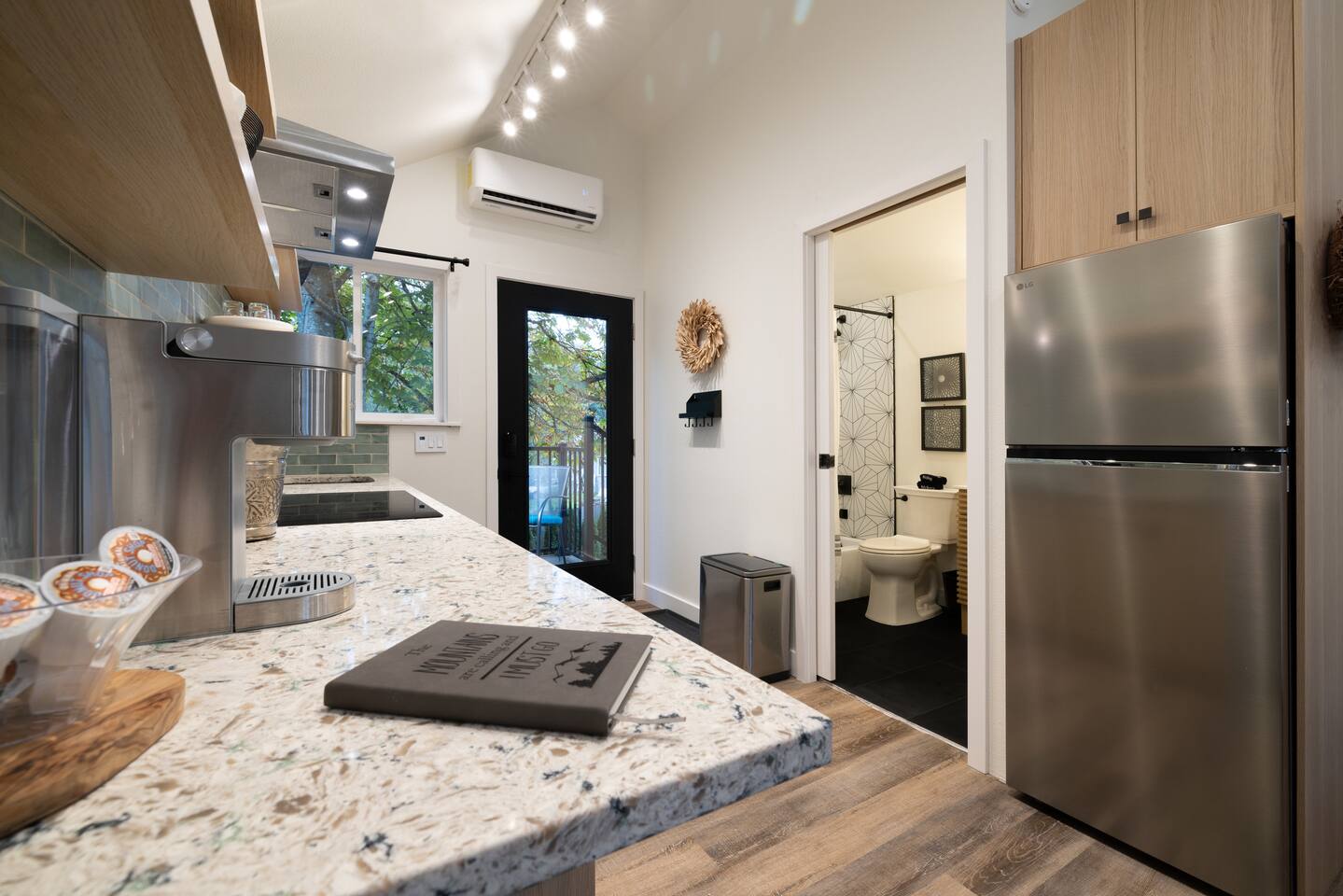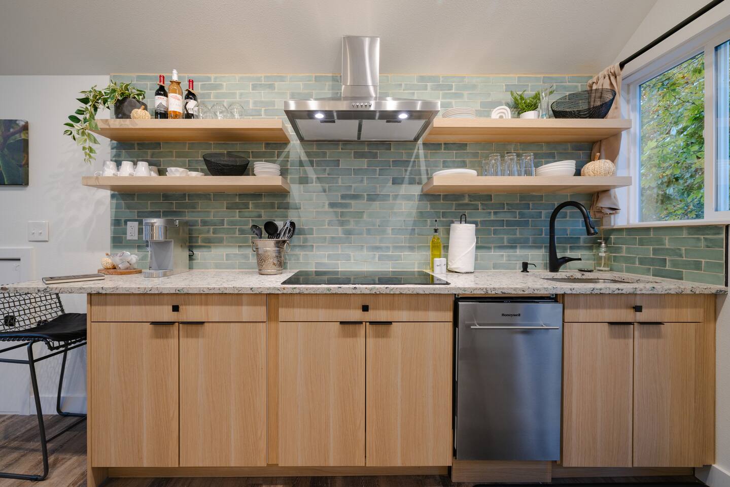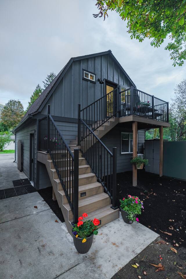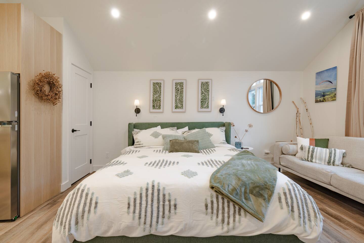 Welcome to The Gateway Barn — a newly renovated, modern 400 sq ft retreat perched above a detached garage, just steps from the main house where our family resides. With vaulted ceilings and thoughtfully designed amenities, this peaceful space is surrounded by trees and nature—an ideal place to reset after a day of adventure or work. The well-appointed kitchenette features high-end stainless steel appliances, fully stocked cupboards, and everything you need to prepare a meal—from pots and pans to utensils galore. Start your day with a complimentary pod in the Keurig, and settle into the cozy breakfast nook to sip your coffee, keep the cook company, or get a bit of work done. We've also included a curated selection of local wines available for purchase—cheers! Enjoy sit-down meals at the four-person dining table, and unwind in the evenings with your choice of Netflix, Hulu Live, Disney+, Paramount+, and Amazon Prime. The bathroom is stocked with plush oversized towels, a hair dryer, and essential toiletries for your comfort. At night, sink into a luxurious King-size Casper mattress with ultra-soft bedding for a truly restful sleep. Step outside to grill on the private deck’s BBQ or enjoy a quiet moment at the bistro table just downstairs. You’re just minutes away from hiking, walking, and mountain bike trailheads—less than 5 minutes on foot or 2 by bike. Downtown Issaquah’s restaurants and shops are a quick 3-minute drive or a 15-minute walk via the Rainier Trail. Prefer skiing? Snoqualmie Pass is just 40 minutes away, and downtown Seattle is under 25. If The Gateway Barn is unavailable and you're a small group, please message Kelsey to inquire about staying at The Gateway House (our main residence) or The Gateway Getaway—both just a few doors away and equally welcoming.