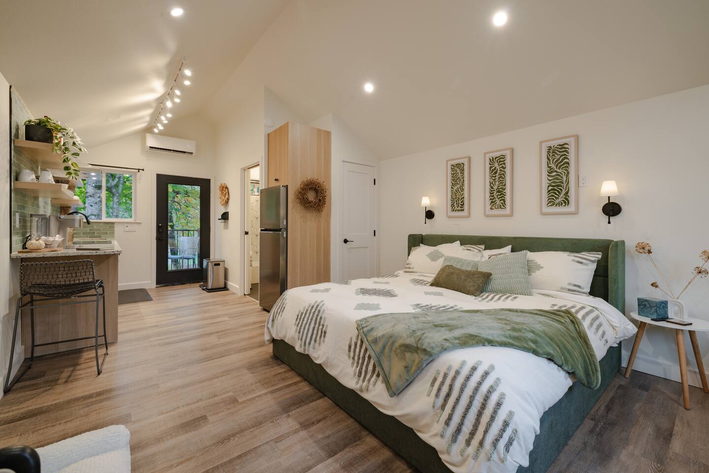 Welcome to Gateway Rentals (grmrentals)! This newly renovated retreat with vaulted ceilings offers the perfect blend of comfort and style. Relax on the outdoor deck or unwind indoors in a cozy space designed for rest. The full kitchenette is stocked with essentials, including an oven toaster, for easy meals. Sleep soundly on the plush King Casper mattress, then wake up refreshed with a Keurig brew or French press coffee. A stay here promises comfort, convenience, and relaxation.
